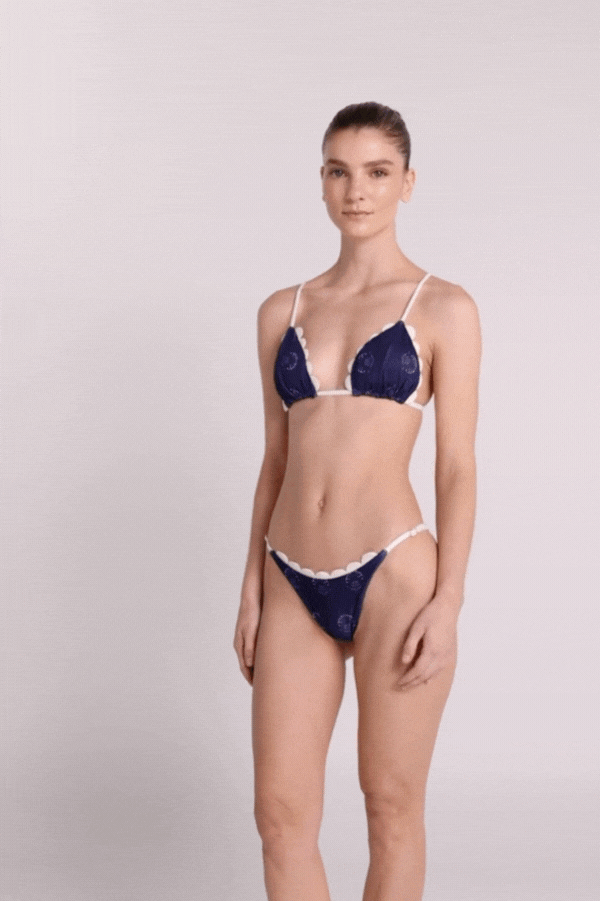 Bottom con tensor graduable en los costados, acabado en baño de oro, y fruncido en la parte posterior.
