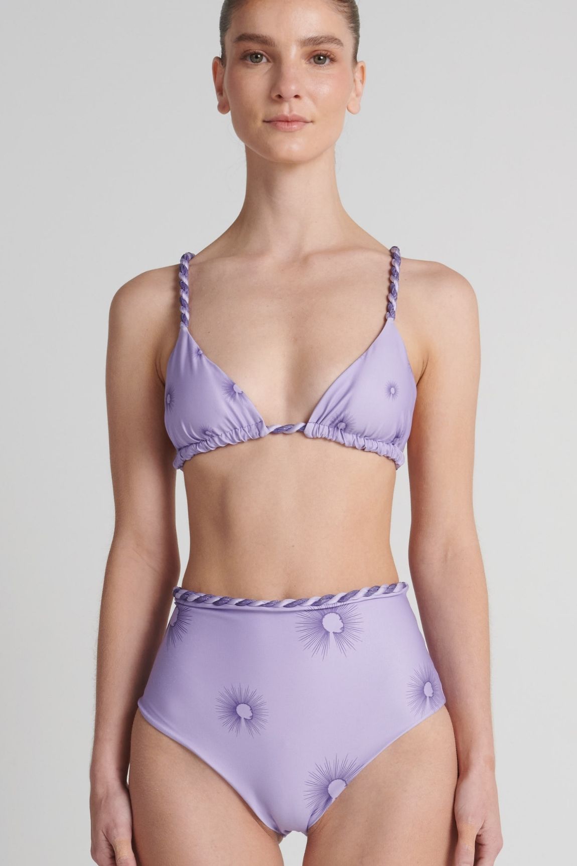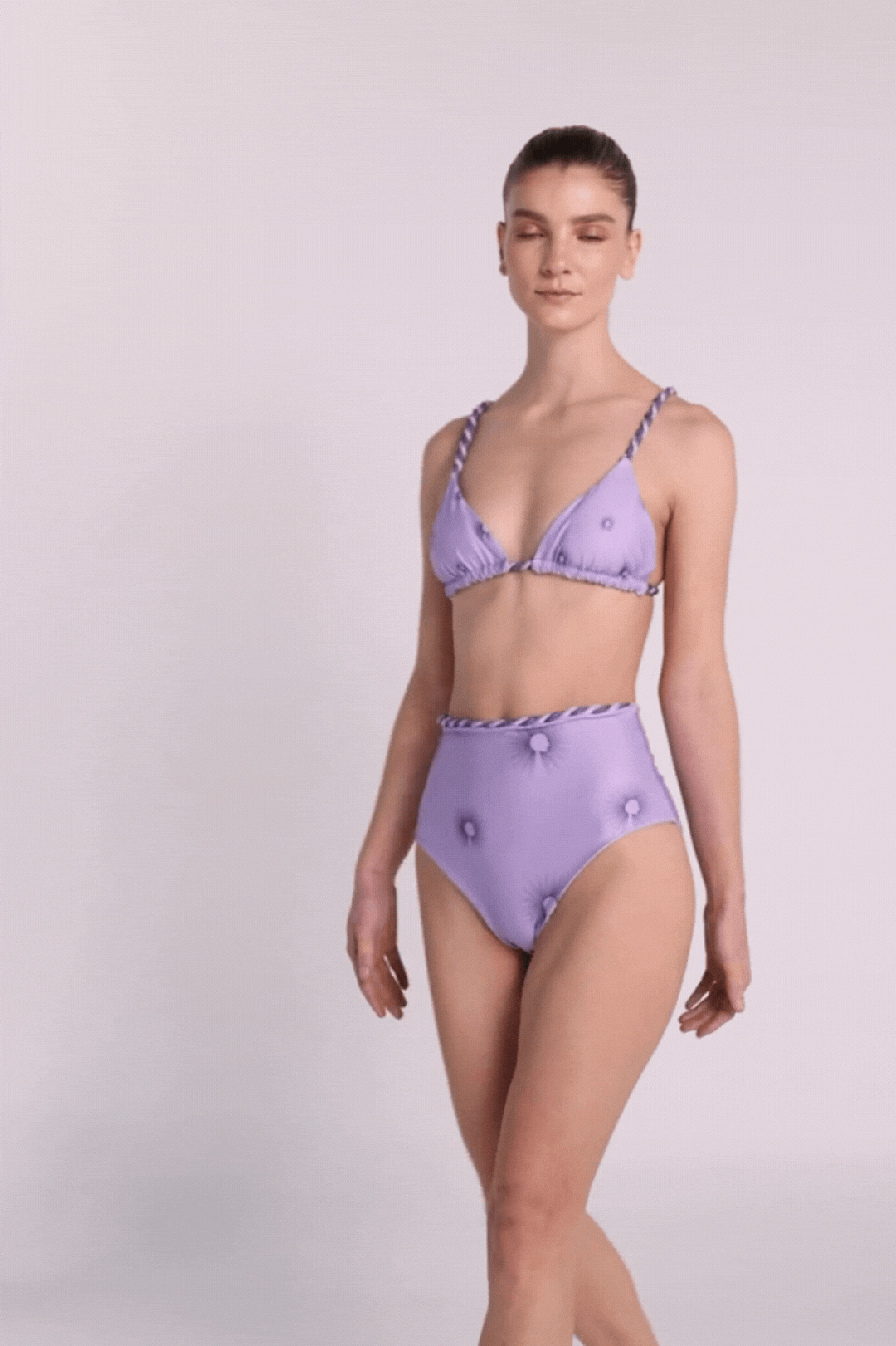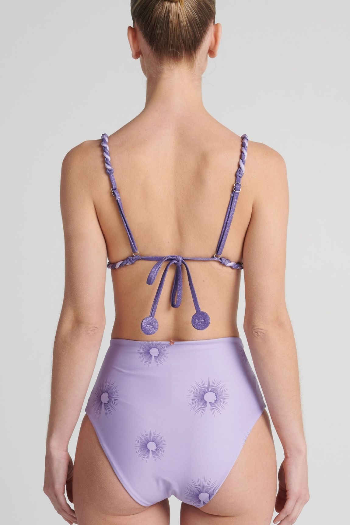 Bottom alto, ajustado en la cintura, con trenzas decorativas elaboradas y fijadas a mano.